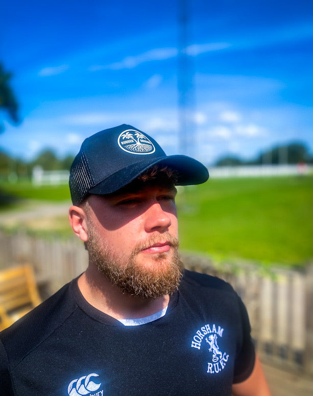 RUGGED ORIGINS Black / Navy Blue Trucker Hat - Coloured Logo
